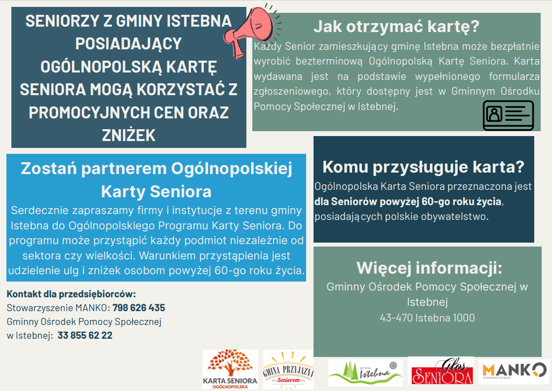 KARTA SENIORA - INFORMACJA DLA SENIORÓW GMINY ISTEBNA!